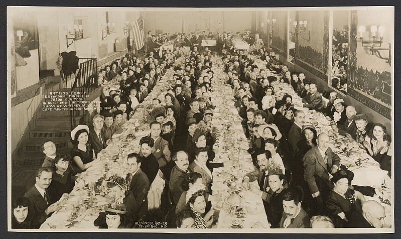 Yasuo Kuniyoshi, born in Japan, lived his life in the United States. He was a highly regarded artist yet, in the aftermath of Pearl Harbor, Kuniyoshi was labeled an “enemy alien” … an “other.” The art community of America, collectors, artists and dealers, gathered around Kuniyoshi. In 1948, a show of his work was mounted at New York’s Whitney Museum of American Art. A dinner was given. Hundreds attended to affirm their support for Yasuo Kuniyoshi. My mother and father were there. I have an original photograph of the many supporters at table … my father barely visible, my mother faintly smiling.